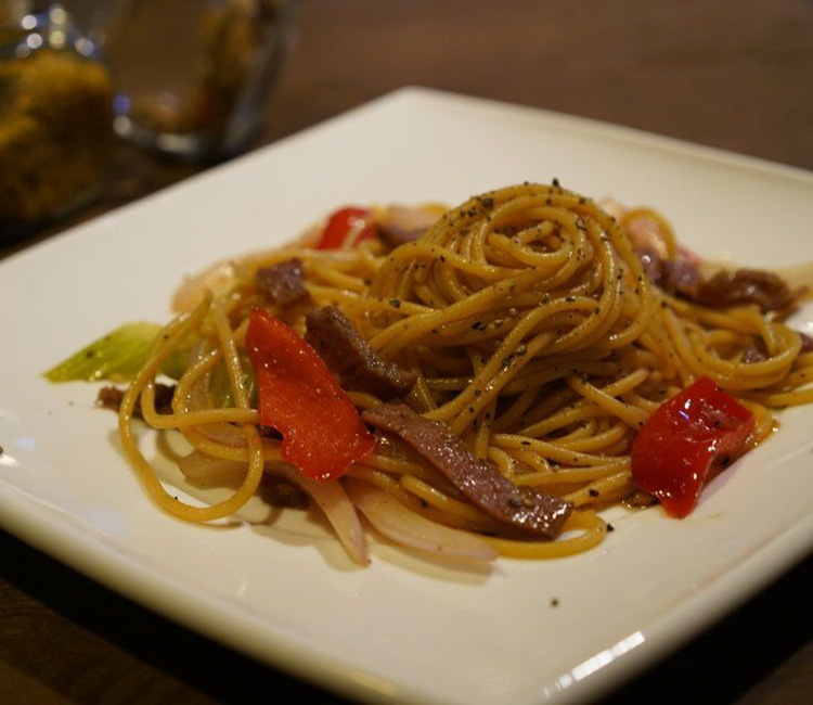 黑椒牛柳辣酱意面